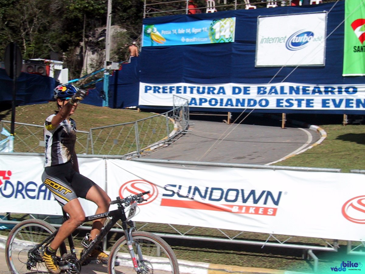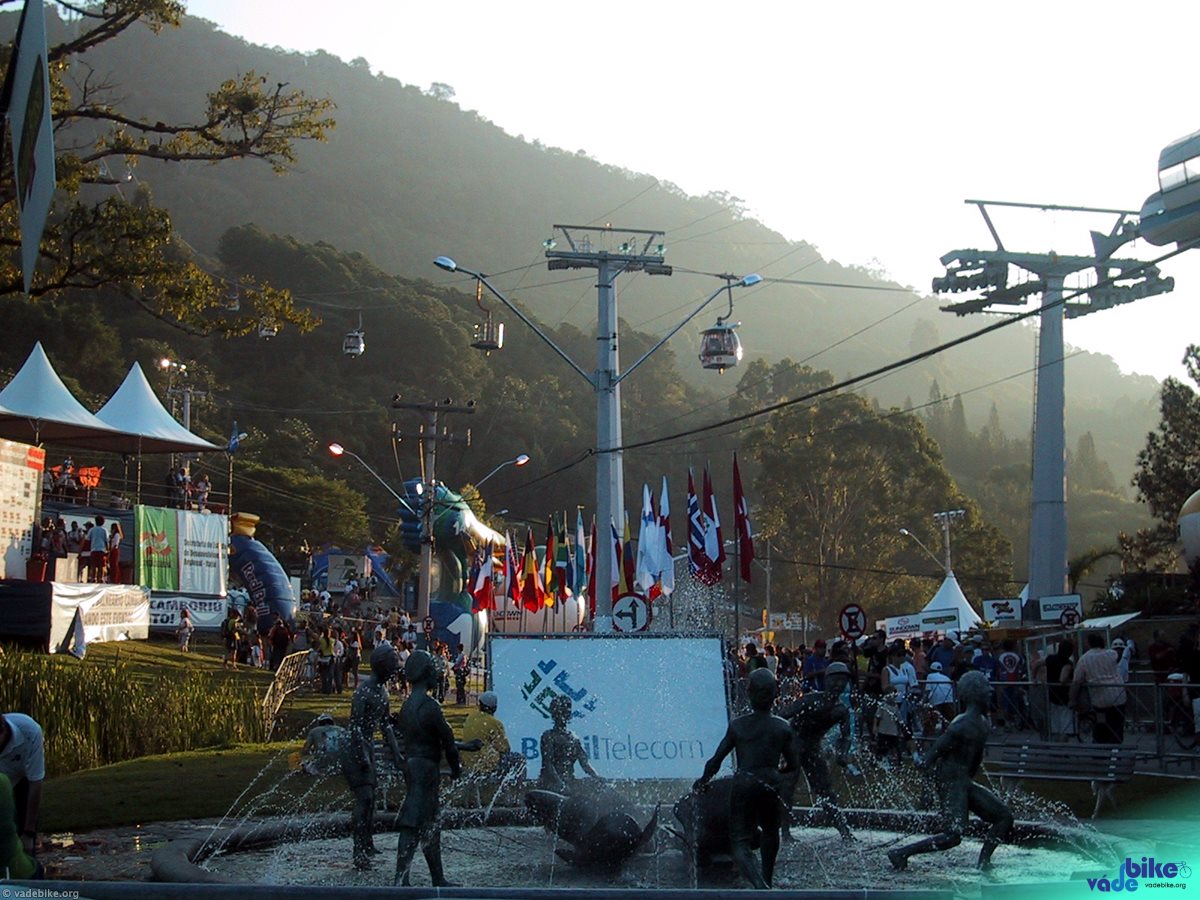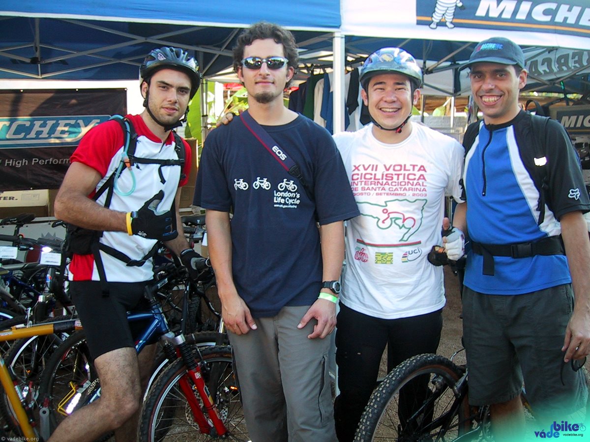 80km e 4h30 depois de sair de Floripa, chegamos. Na entrada da cidade, uma placa no viaduto indicava o caminho: “copa do mundo de mountain-bike”. Cada um foi para o seu hotel desfazer a mala e tomar um banho, depois nos desencontramos (sim, nos perdemos) e cada um foi por si só ao evento. Só fomos nos encontrar no final do dia. Mas isso não foi problema: nesses dois dias em que estive lá, encontrei muitos amigos, novos e antigos. Gente de Floripa, gente de São Paulo, gente que eu só conhecia por e-mail, gente que eu conheci ali na hora.