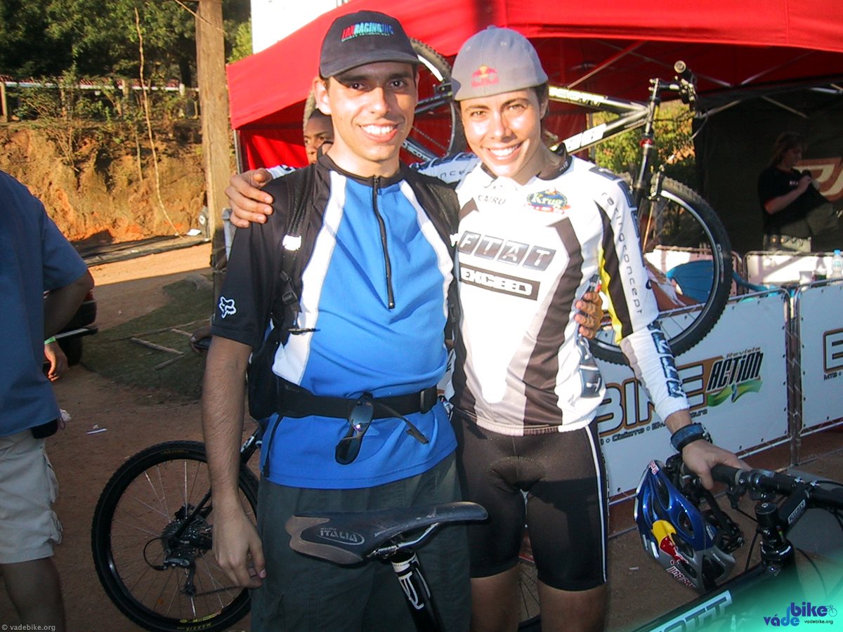Conversei com a Jaqueline Mourão e com a Ivonne Kraft (a alemã que chegou em terceiro) e ambas são muito simpáticas. A Ivonne depois de correr ainda passou um tempo pedalando num rolo de treino! Ela disse que era pra “soltar a musculatura”. :O   A Jaque, miss simpatia, ficou ali no meio da feira tirando fotos com os “populares” e conversando com todo mundo.