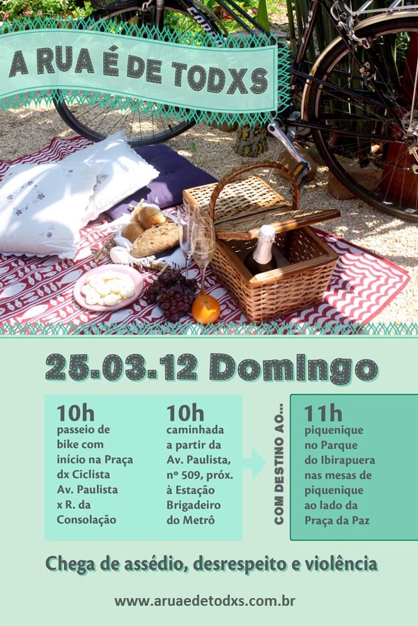 Em referência a esse problema está sendo organizado um encontro para conversar sobre o preconceito, assédio e segurança. O evento: “A rua é de todxs! Caminhada e Pedal por uma cidade que respeite as mulheres” tem o objetivo de levar todas as pessoas, independentemente do gênero, cor, raça, credo ou classe social, para ocupar o espaço público sem precisar ouvir frases engraçadas ou ofensivas.