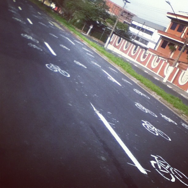 Em abril de 2012, após a morte do ciclista Lauro Neri na aveinda Eliseu de Almeida, cidadãos pintaram bicicletinhas no asfalto em protesto. A ciclovia, que deveria estar pronta há anos, teria salvo sua vida. Foto: Aline Cavalcante