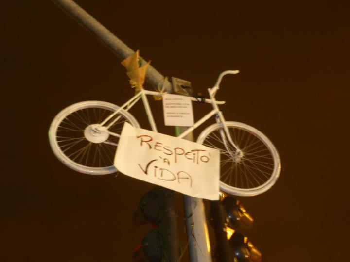 A “bicicleta fantasma” ou “bicicleta branca” serve para lembrar que por ali passou um cidadão, que teve sua vida atropelada pela pressa de alguém.