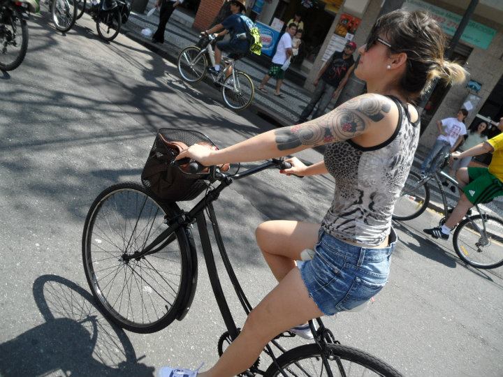 Disse que recebi vários “elogios”, porque muitas vezes recebi olhares e cumprimentos andando de bicicleta. A maioria de homens, mas tb mulheres, de todas as idades (de crianças a pessoas de mais idade) que me parecem respeituosos e não hostis. Talvez gentileza gere gentileza. Eu sorrio e sou paciente ao pedalar. Não sou arrogante apesar de, como todos nós ciclistas, às vezes perder a paciência e sim, já passei por alguns sustos (poucos) e sei que tem muito FDP por aí. Que não mediria esforço pra te jogar na rua ou atropelar. Enfim, acho que depende muito de sua atitude também. Não é só o vestir. Mas se você parece ser amigável e talvez não chame muito a atenção, as pessoas te respeitem. Talvez. Não sei. Ou talvez não seja tão linda assim… kkk Brincadeira, realmente não acho que beleza faça a menor diferença no assédio. Falando em roupas curtas, já andei de short bem curto e não tive problema. Mas foi só uma vez e num domingo saindo da Faria Lima para o Parque do Povo. Mas é isso, acho que é importante definir melhor o assédio, principalmente o assédio na bicicleta. Andando já sofri assédio algumas poucas vezes. Pra mim assédio é quando alguém ou te toca (agride físicamente) ou com o olhar, gesto e a fala te falta o respeito. Invade seu espaço físico mesmo de longe ao tocar na sua dignidade – ao te humilhar. No caso, o xingar é óbvio e também um gesto obsceno, mas às vezes até um olhar é já ofensivo e uma forma de assédio. Nesses casos, geralmente, eu confronto, dou aquele olhar venenoso e o cara fica com medo. Se não for isso, com certeza ele perde o tesão pois meu rostro se transforma. Já cheguei a responder de outra forma mas geralmente não o faço pq não sou muito boa com palavras, neste caso nunca sei o que responder. Agora se o faço é pq estou em lugar público e jamais sozinha ou em posição de menos vantagem. Talvez a cicilista quase atropelada em questão poderia pensar mais nisso antes de reagir. Não a estou julgando. A culpa não é dela e pessoalmente nem eu sei o que faria se fosse assediada ao andar de bicicleta, pois na hora as reações são bem diferentes e a gente encima da bike se acha em uma posição melhor do que andando. Mas acho que talvez esse é um ponto para reflexão, considerando os loucos que existem por aí..