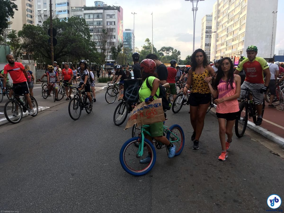 Em bicicletas (e alguns skates), as pessoas que protestavam saíram da Praça do Ciclista no início da noite, ocupando todas as faixas da Avenida Paulista, sentido Paraíso. A manifestação continuou pela Vergueiro e Domingos de Moraes sentido Jabaquara, até descer para a Avenida Ricardo Jafet.