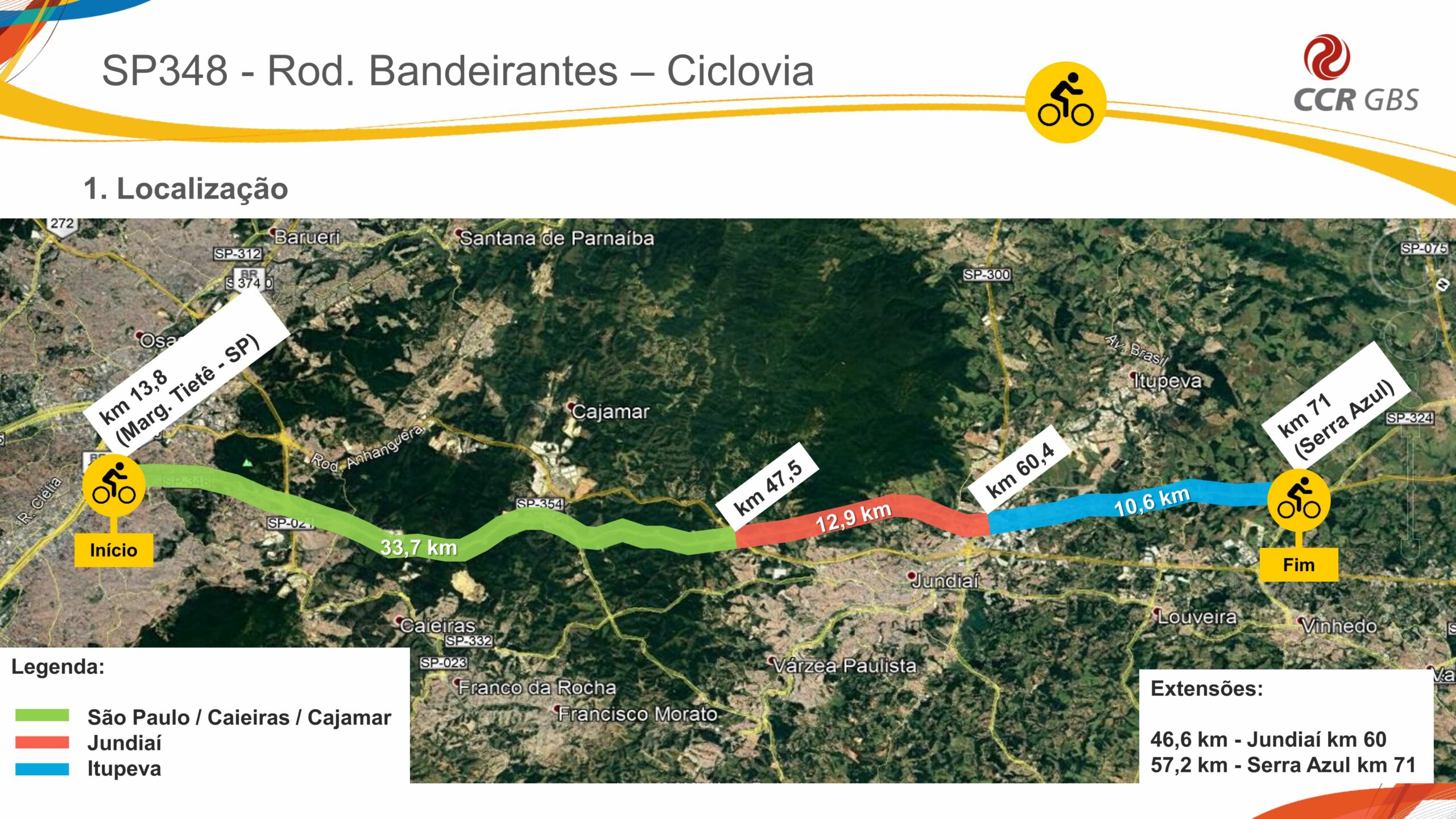 A princípio, a promessa é que a ciclovia ligue as cidades de São Paulo e Itupeva, passando por outros municípios pelo caminho, como Jundiaí e Cajamar. Mas isso dependerá da localização dos acessos ao longo do caminho, algo que veremos mais adiante no projeto funcional.